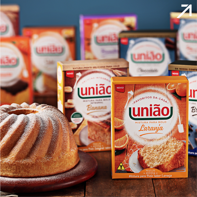 Para a chegada de União à categoria de Mistura para Bolos, desenvolvemos a identidade visual e comunicação, que se desdobrou para os sabores das três linhas: Favoritos da Casa, Sabores Irresistíveis e Delícias Integrais. As embalagens resgatam o apelo emocional do preparo de receitas caseiras e fazem um convite para tornar o mundo mais doce.